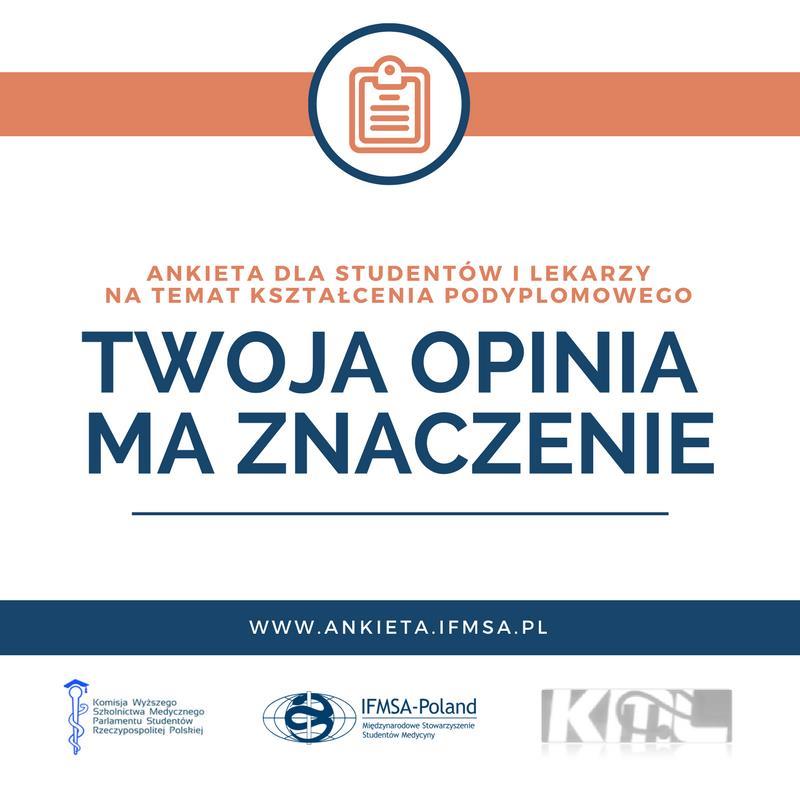 Jeśli jesteś: studentem medycyny, lekarzem stażystą, lekarzem w trakcie specjalizacji Wypełnij ankietę na http://www.ankieta.ifmsa.pl/ Od kilku lat w środowisku lekarskim podnoszona jest dyskusja nad słusznością obecnej formy szkolenia specjalizacyjnego i jej wpływie na wzrastające tendencje emigracyjne młodych lekarzy. Wątpliwości budzi sposób rozdzielania miejsc rezydenckich, który według wielu jest nieadekwatny do zapotrzebowania pacjentów, jak i kwalifikacjaDodane przez Newman