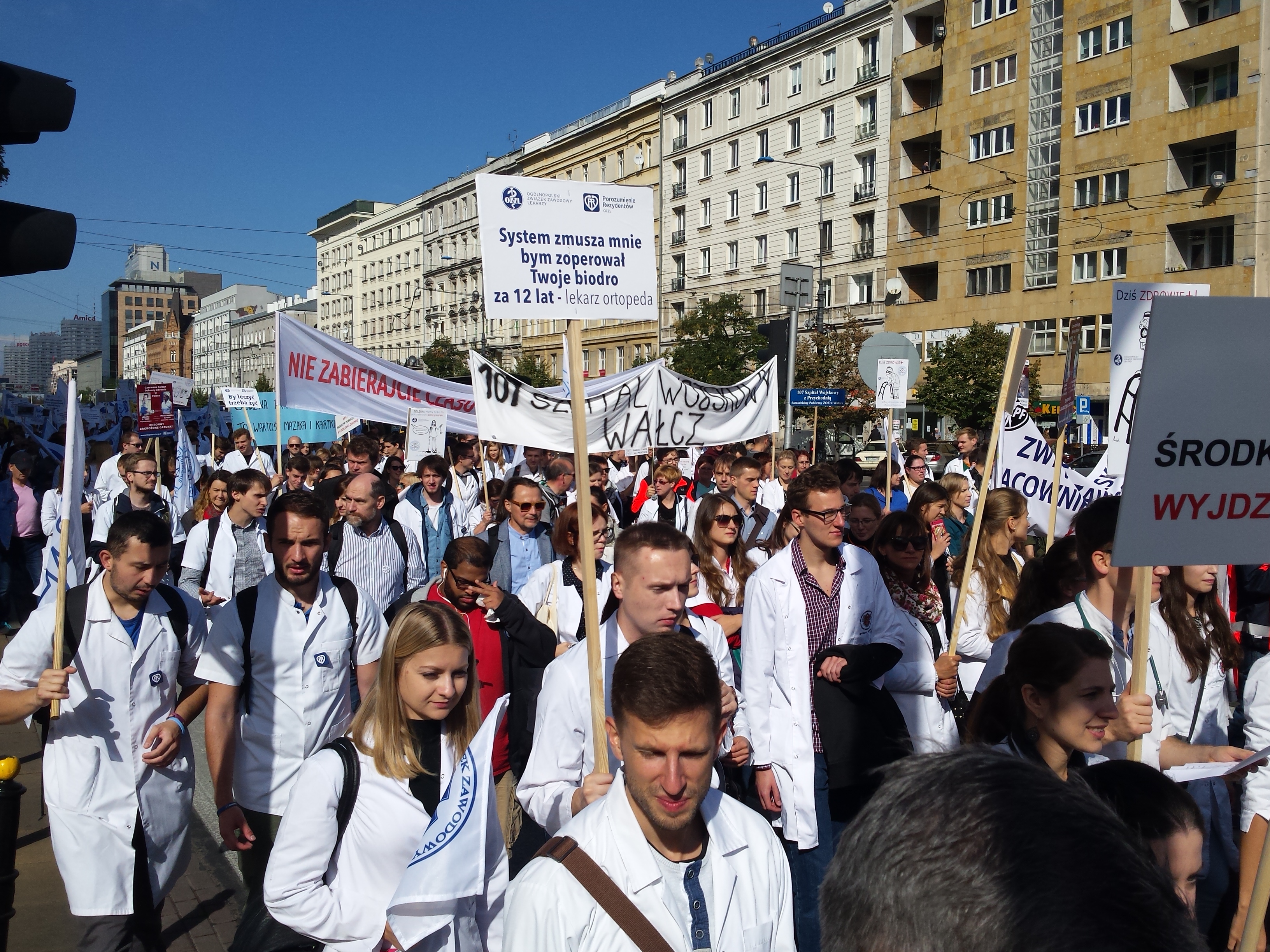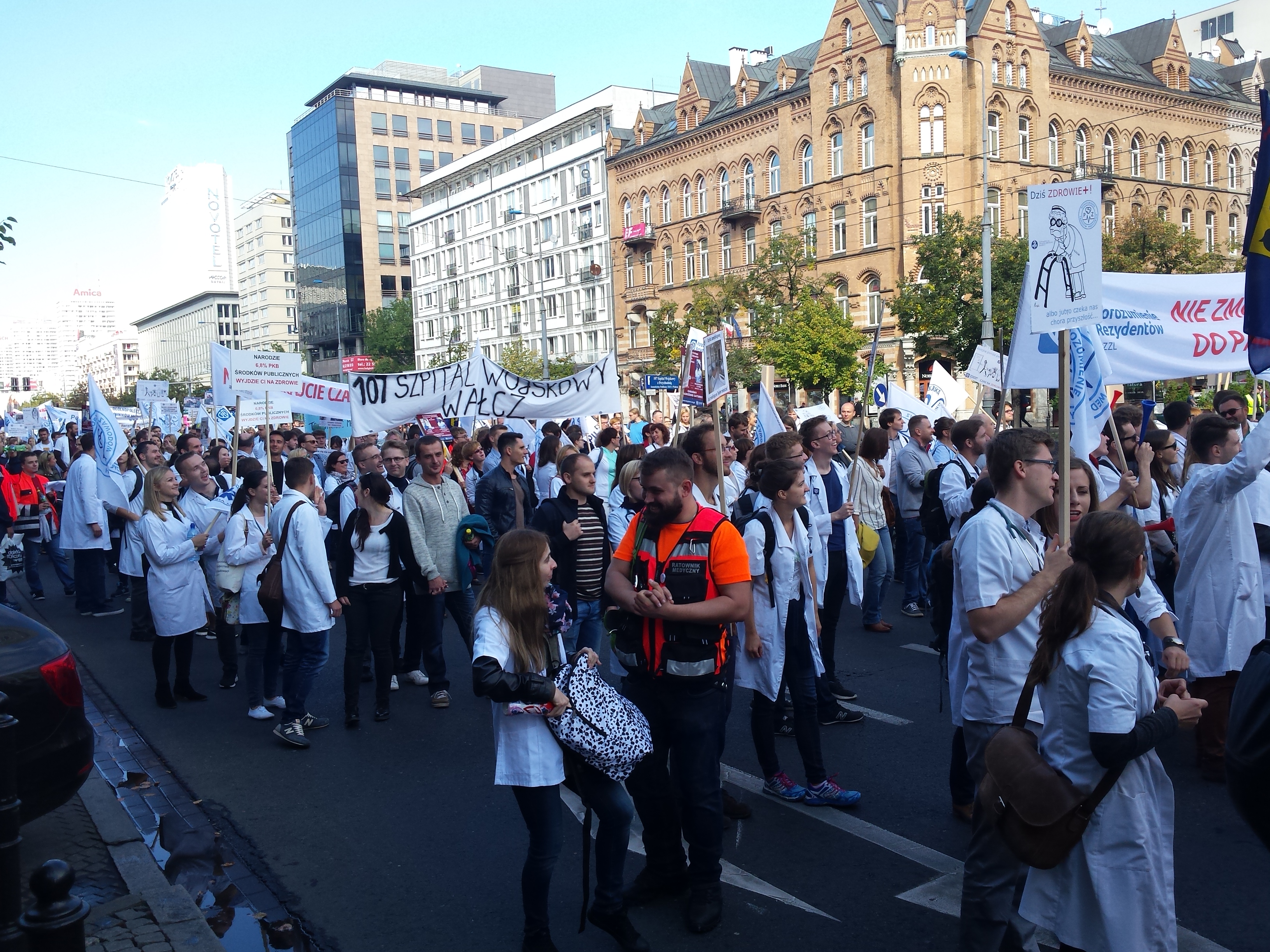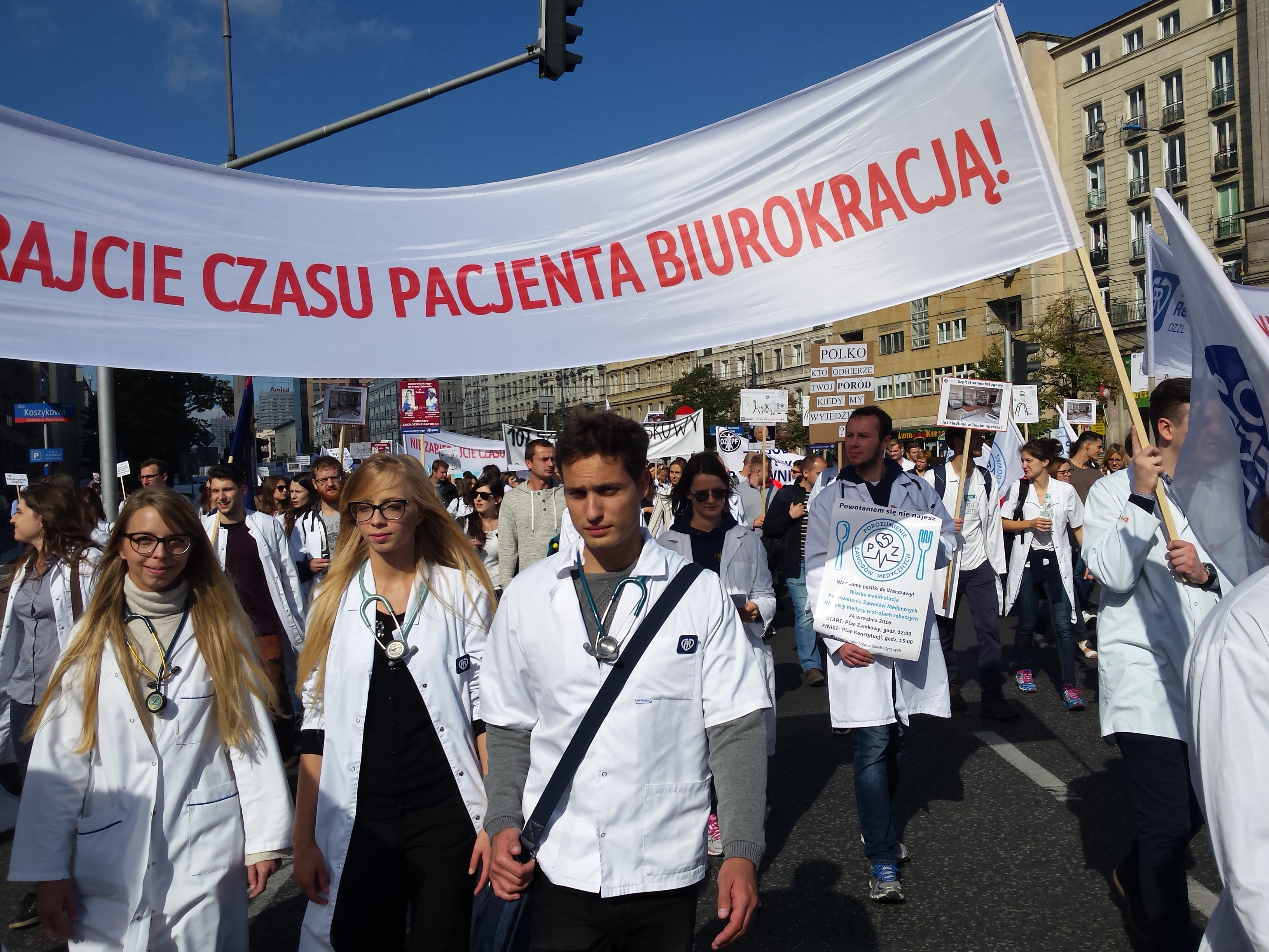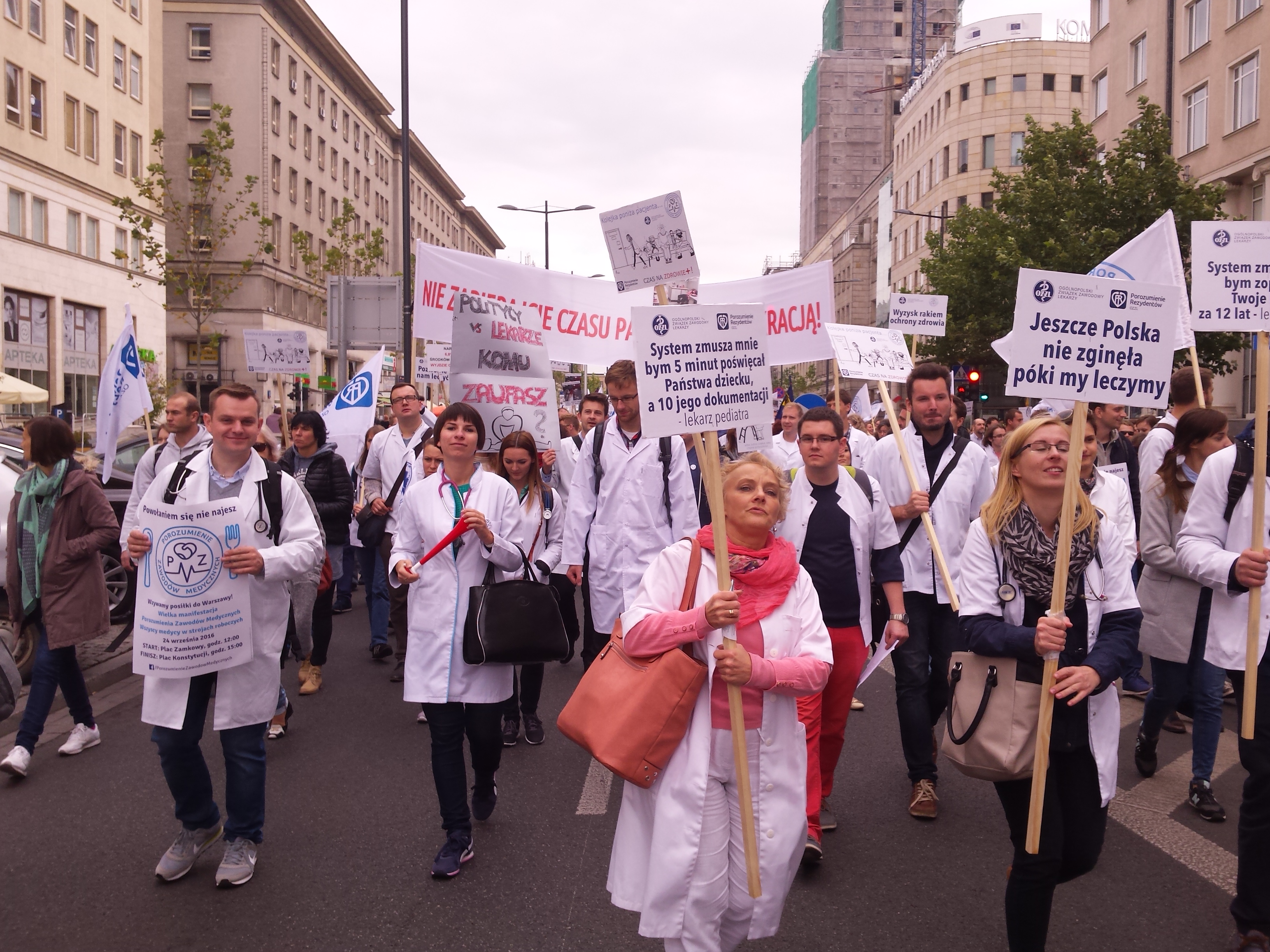 W manifestacji Porozumienia Zawodów Medycznych 24 września 2016 w Warszawie licznie wzięli udział przedstawiciele medycznych związków zawodowych oraz wszystkich zawodów związanych z medycyną (pielęgniarki, położne, technicy medyczni, ratownicy medyczni, diagności medyczni, fizjoterapeuci, technicy radiologiczni, lekarze specjaliści, lekarze rezydenci, lekarze stażyści, studenci). Kolorowy orszak białych fartuchów, pomarańczowych ratowniczych kurtek, niebieskich zabiegowych bluz przyciągał wzrok warszawiaków i odznaczał się na tle miejskich murów.