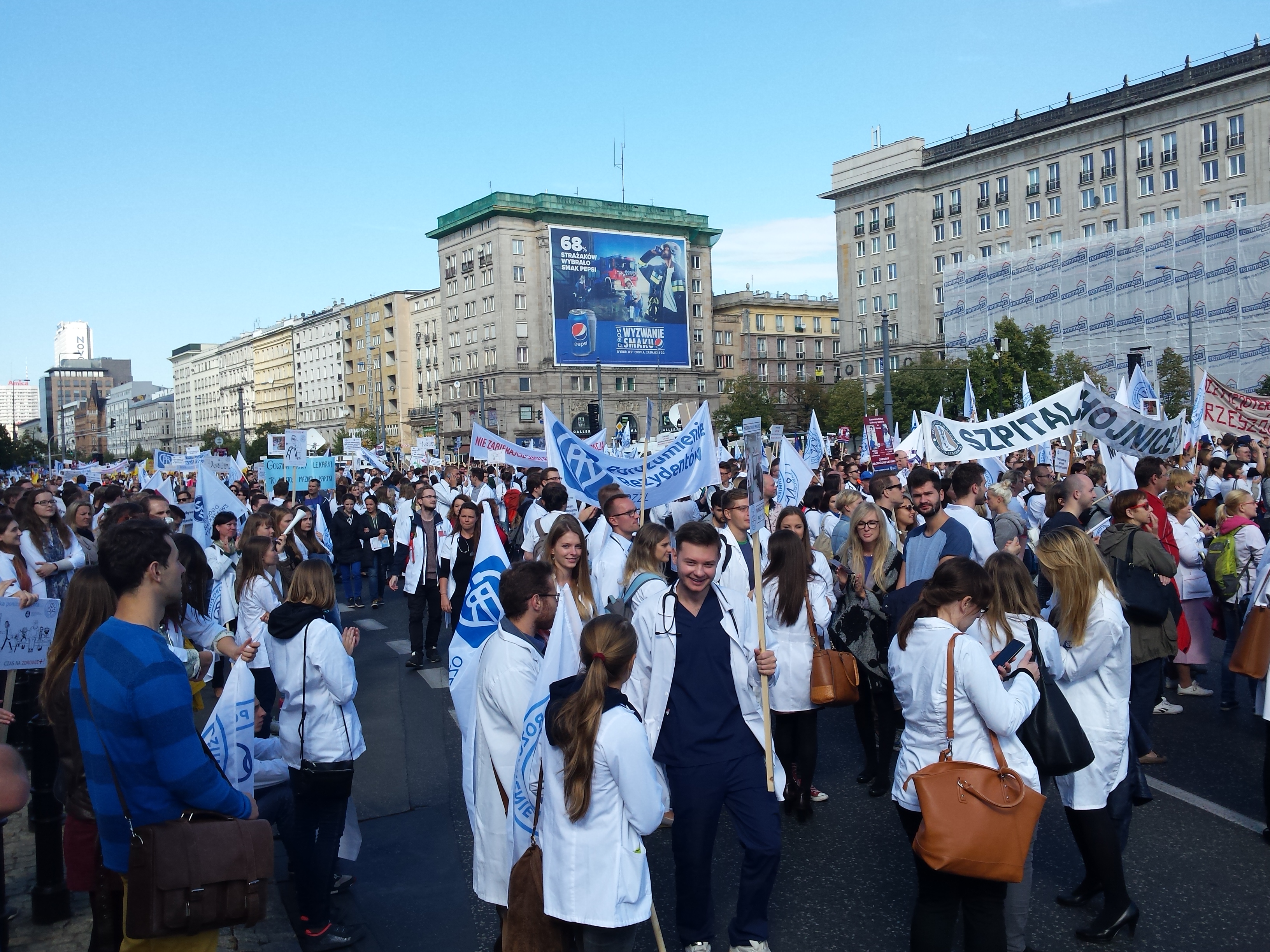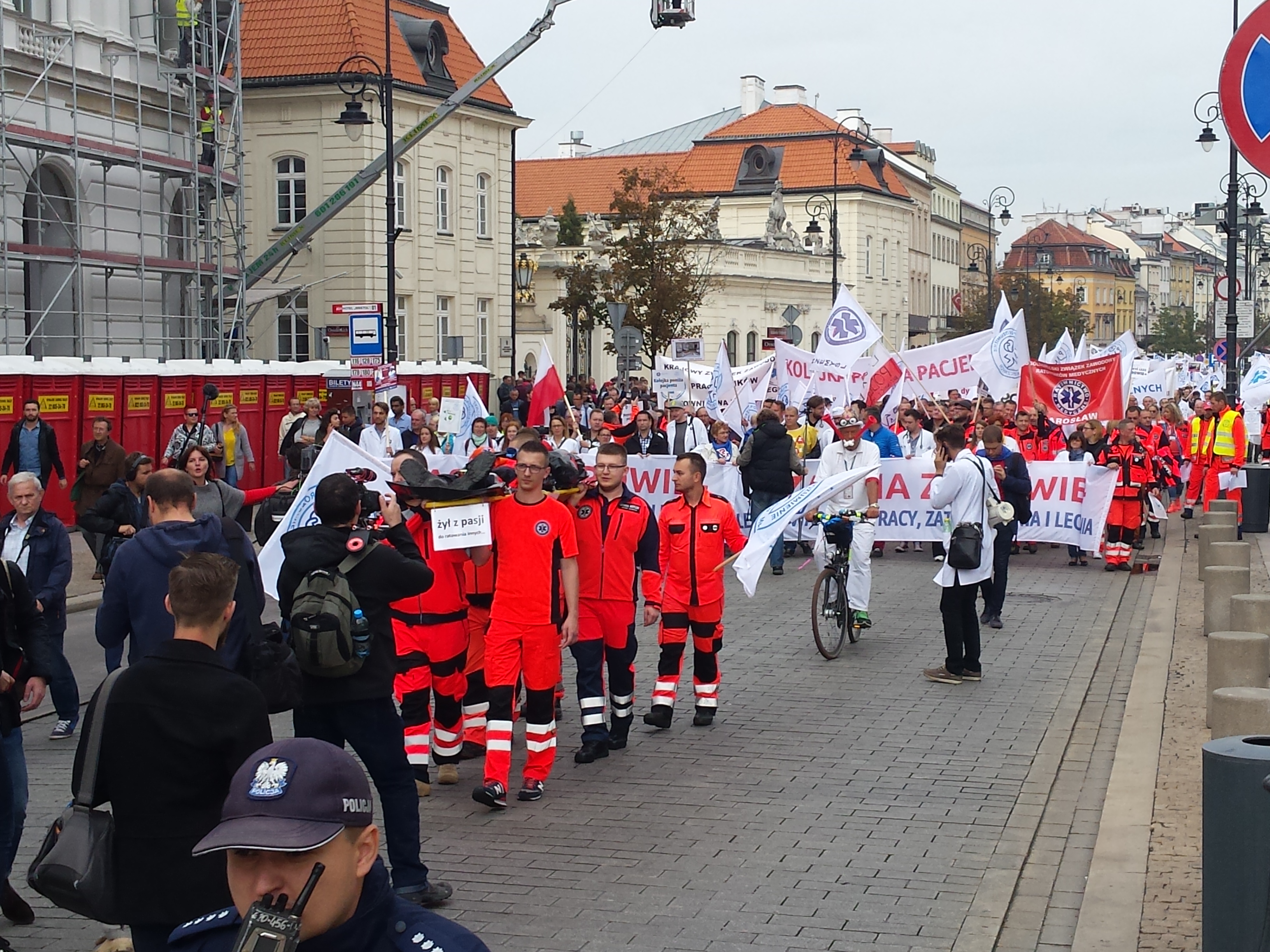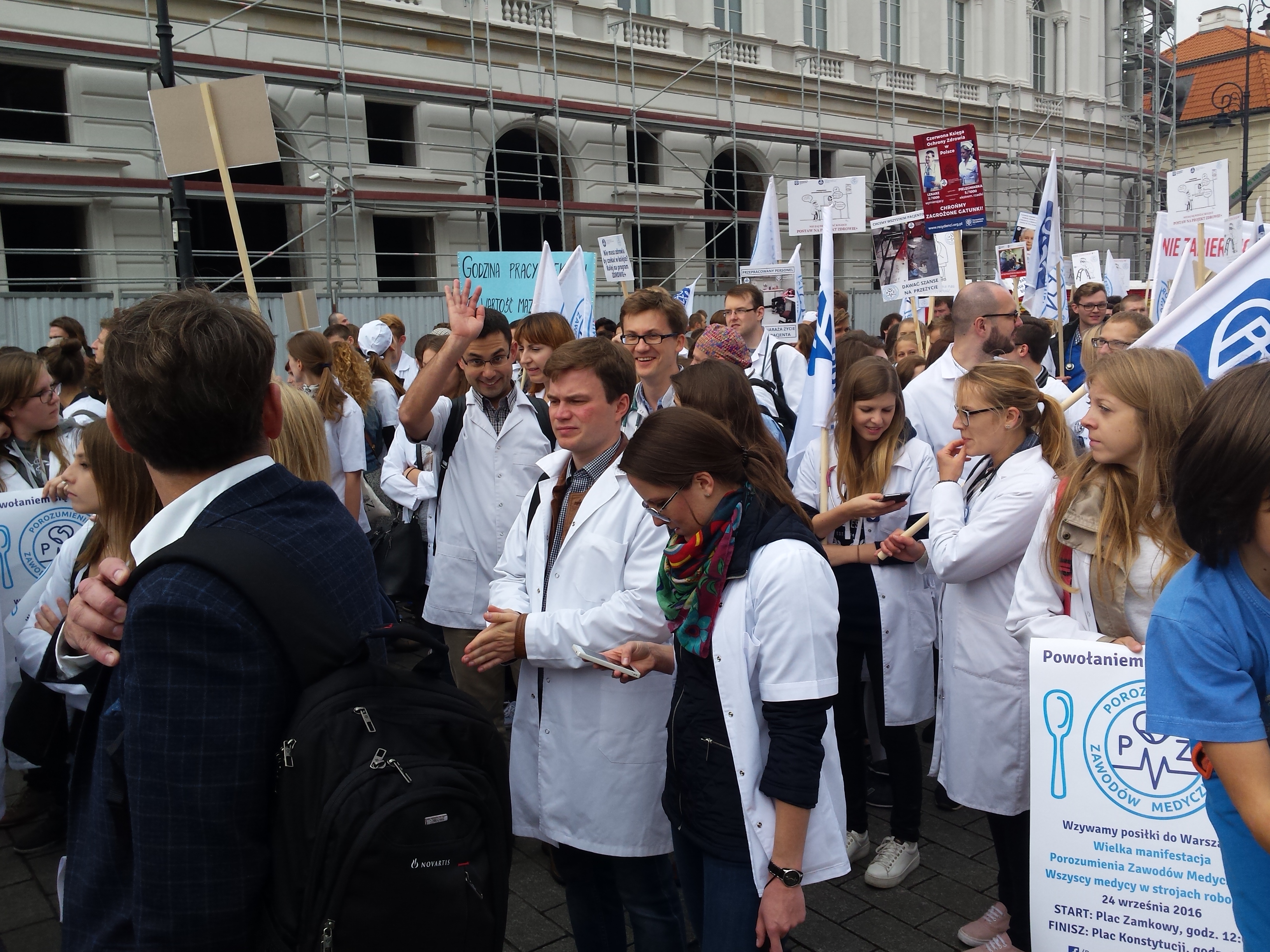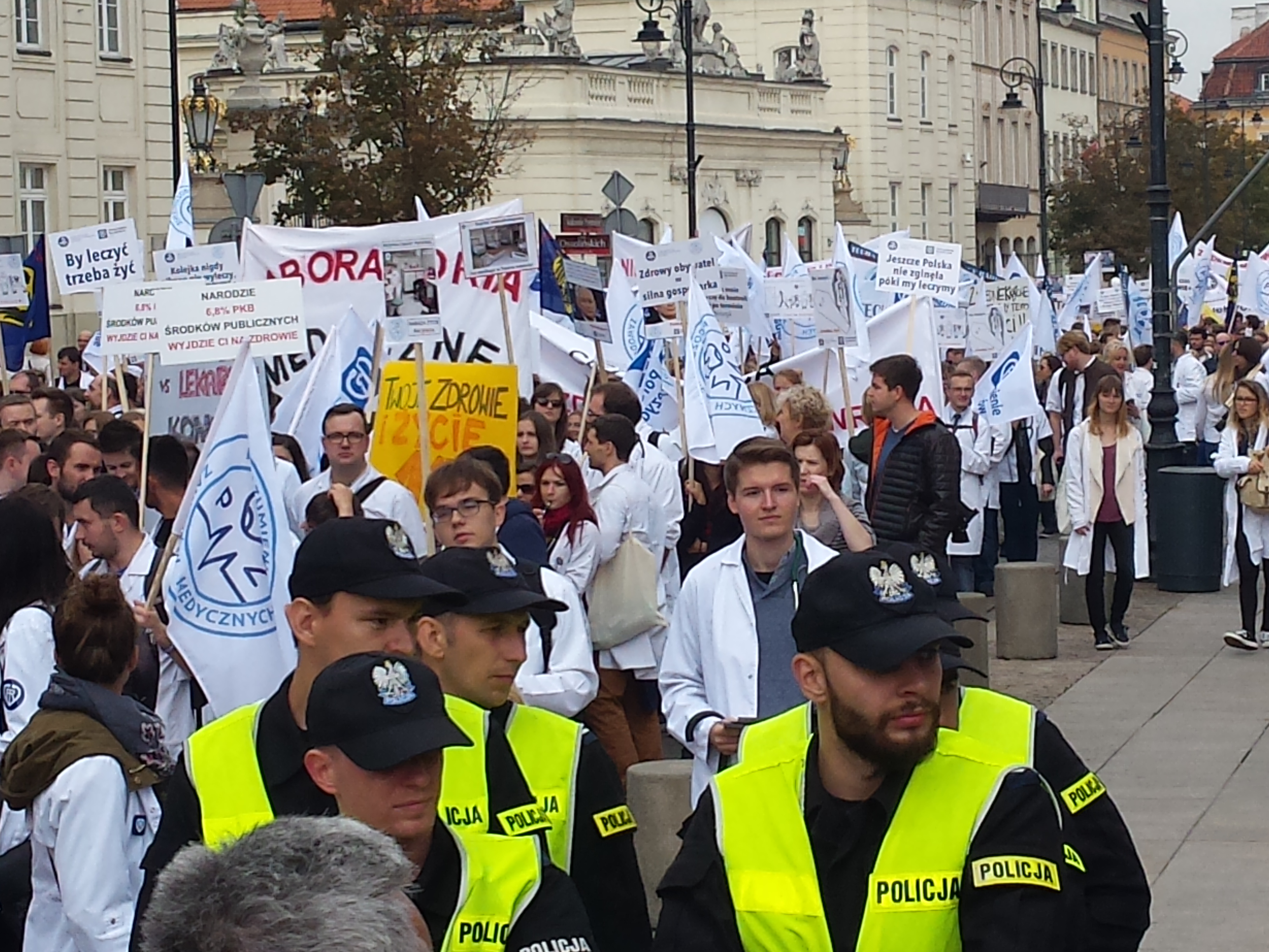 W manifestacji Porozumienia Zawodów Medycznych 24 września 2016 w Warszawie licznie wzięli udział przedstawiciele medycznych związków zawodowych oraz wszystkich zawodów związanych z medycyną (pielęgniarki, położne, technicy medyczni, ratownicy medyczni, diagności medyczni, fizjoterapeuci, technicy radiologiczni, lekarze specjaliści, lekarze rezydenci, lekarze stażyści, studenci). Kolorowy orszak białych fartuchów, pomarańczowych ratowniczych kurtek, niebieskich zabiegowych bluz przyciągał wzrok warszawiaków i odznaczał się na tle miejskich murów.
